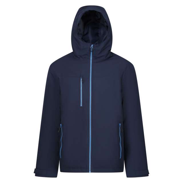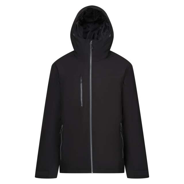 Fabric Information;100% Polyester (Recycled);4 Way Stretch fabric;Waterproof and breathable (Isotex 10000);Recycled Thermoguard insulation;;Special Features;Taped seams;Grown on hood with concealed adjusters;Contrast zip detail;Full zip with inner stormflap and chin guard;Zipped side pockets and chest pocket;Internal zipped security pocket;Adjustable cuffs and hem;Concealed zip entrance in lining for embroidery access;