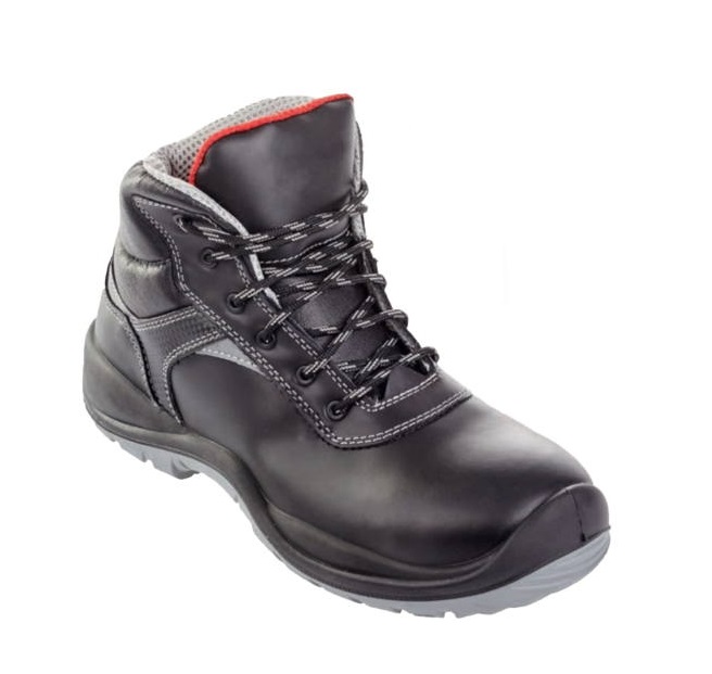Kiváló vízlepergető, szellőző, erős, fekete szín marhabőr felsőrész. Könnyű, kompozit lábujjvédő (CK). Talpátszúrás elleni, fémmentes, rugalmas textil talplemez. EU szabvány: EN ISO 20344, EN ISO 20345