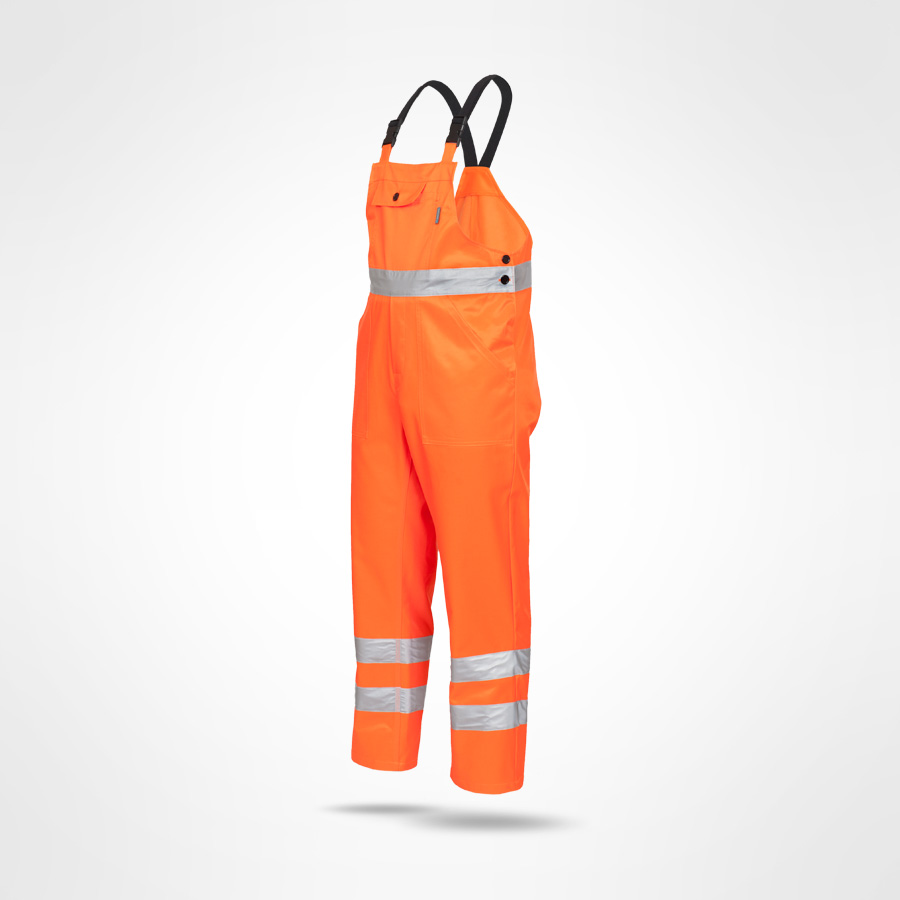 Fabric Information;Waterproof and breathable Isotex;10.000 coated polyester fabric;Conforms to EN 343 Class 3:3;Windproof fabric;Taped seams;Special Features;Yellow colour-way conforms to EN20471;class 1;Orange colour-way conforms to RIS-3279/TOM;Press studs at hem;Elasticated waist;Max 25 Washes;