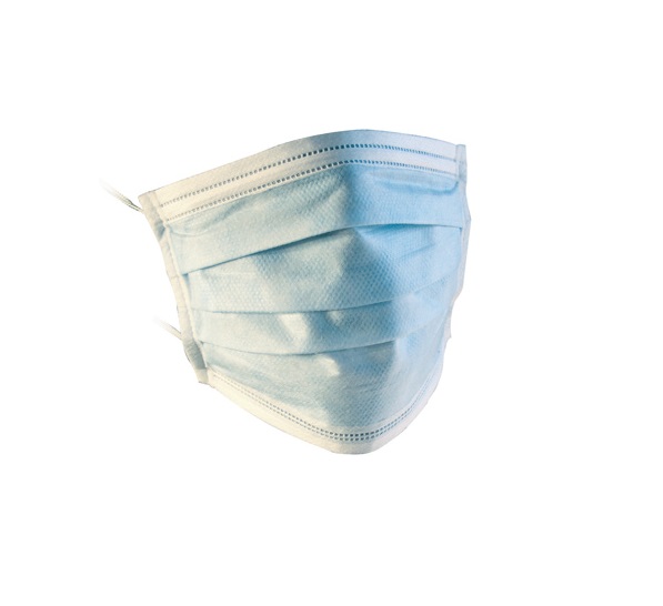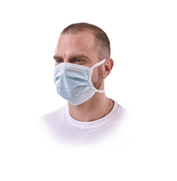Kék, háromrétegű higiénikus egészségügyi (műtős) papírmaszk, két megkötővel. 50 db/doboz
